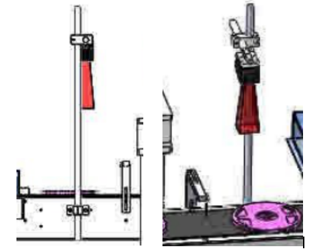 2.輸送帶上加裝攔停定位機構,因B工位已經定位,且貼標機,也調好了左右移動的位置,所以該工位只是往下壓,即可貼標在指定位置,