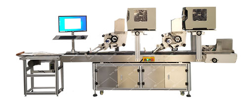 吊牌在線打印貼標機適用于平面產品實時打印貼標,如卡片、吊牌、未成型紙盒、包裝袋子等,雙標頭設計實現在同一產品不同水平位置同時貼2張或多張標簽;打印系統對接數據庫,邊打印邊貼標,如打印條碼、價格等內容,廣泛應用于印刷品的平面打印貼標;