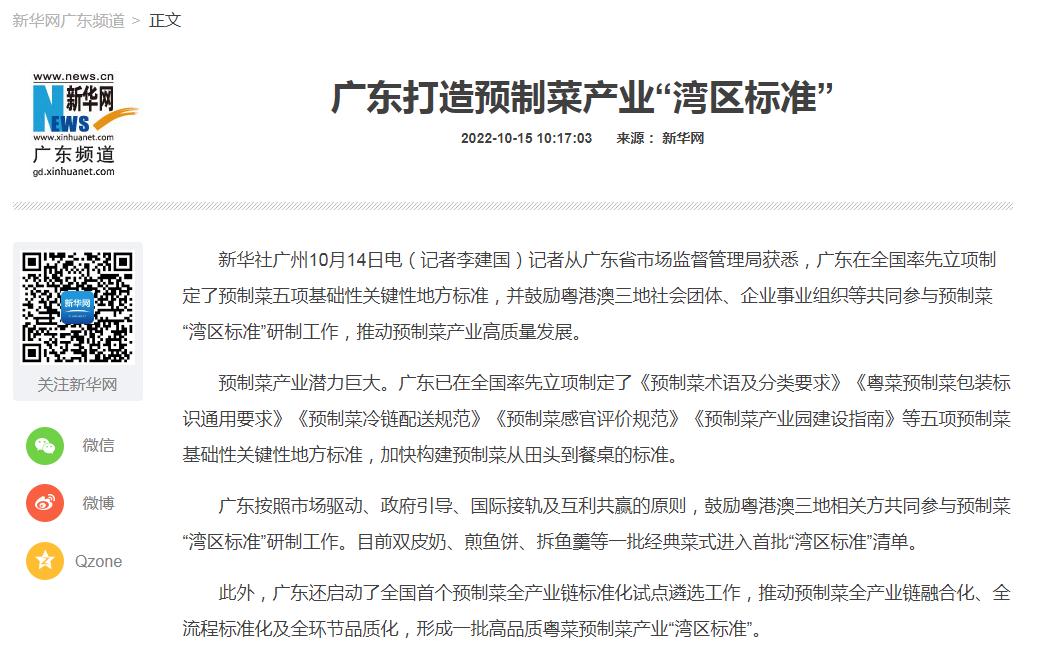 圖1:《廣東打造預(yù)制菜產(chǎn)業(yè)“灣區(qū)標(biāo)準(zhǔn)”》新聞報道來源