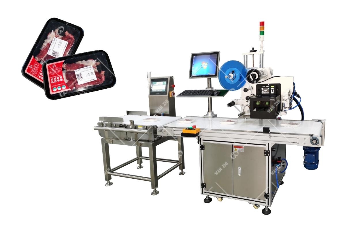 適應(yīng)于不同高度(厚度)的包裝盒/袋自動稱重貼標(biāo), 前端可連接包裝機(jī)、包膜機(jī),稱重后信息即時傳輸?shù)酱蛴∠到y(tǒng)生成內(nèi)容后在對應(yīng)的產(chǎn)品或包裝上實時貼標(biāo),采用先進(jìn)無接觸吹貼式貼標(biāo),一分鐘最高可貼50Psc,打印模板可編輯,方便生產(chǎn)管理信息溯源,實現(xiàn)流水線無人化作業(yè)。