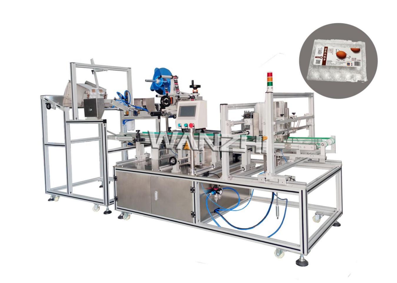 適用于吸塑包裝盒表面貼標(biāo),如水果盒、雞蛋盒等;機(jī)械手自動取盒送到輸送上進(jìn)行貼標(biāo)后自動收集產(chǎn)品,性能穩(wěn)定生產(chǎn)效率1200~2300件/小時;可單機(jī)使用,也可與前端注塑機(jī)連接使用。